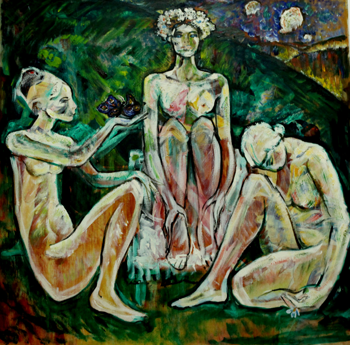 Женщина играет на скрипке, изящно водя смычком; женщина сочиняет стихи, грациозно взмахивая пером. Но главное у нее не это, а то, что ниже. И не музыку стиха вы будете слушать, а на две округлости любоваться. Зачем делать вид, что это неприличная тема? Художники Новосибирска решили высказаться о наболевшем откровенно и поэтично.