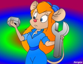 • Тоже волнующе недоступна, но по иной чем Джессика причине - на такую фигню, как кокетство, у Гайки просто времени нет – есть масса более интересных занятий. Впрочем, когда ей угодно высунуть нос из деталек – Чип и Дейл тут как тут. И им суждено 65 серий ревниво коситься друг на друга.