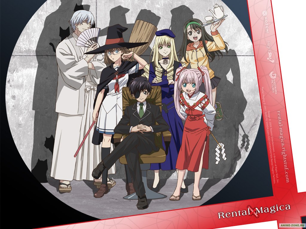 Вообще, летом иногда от нечего делать смотришь то, на что в другое время даже и внимания не обратил бы. Я сидела, вспоминала всякие серии про пляж, - и вуаля!. Внезапно вспомнила аниме, которое посмотрела в прошлом году, от дикого нечего делать, разумеется, на даче. Это "Rental Magica". В принципе, совсем ничего особенного. Не сказать, что ерунда. Довольно смотрибельная вещь. Неплохая графика и, в принципе, иногда действие разгоняется до приемлемых скоростей. Или мне так от лета и скуки показалось? Не знаю. Но, на самом деле, мой самый первый взгляд это аниме привлекло тем, что там под другими именами и с другими характерами собраны все штампы и прям узнаваемые образы из очень и очень известных аниме. Вот вам картинка – кто больше прообразов назовет?! Ну, реально, навскидку можно сразу назвать почти всех.