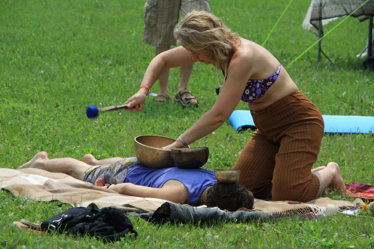 Невозможно было пройти мимо практик с тибетскими поющими чашами. Чаши разных размеров, в руках опытного мастера студии "Сурья" дают возможность почувствовать вашему телу каждый позвонок, каждую его клеточку. Мир после этого глубинного гудения кажется мягче, а тело – понятнее. Хочется повторять и учиться.