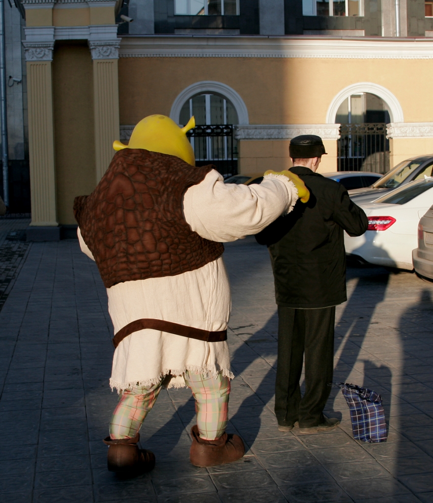 В общем, ребята, Шрэк изменился. Корректно общается с публикой, расстраивается из-за погоды.